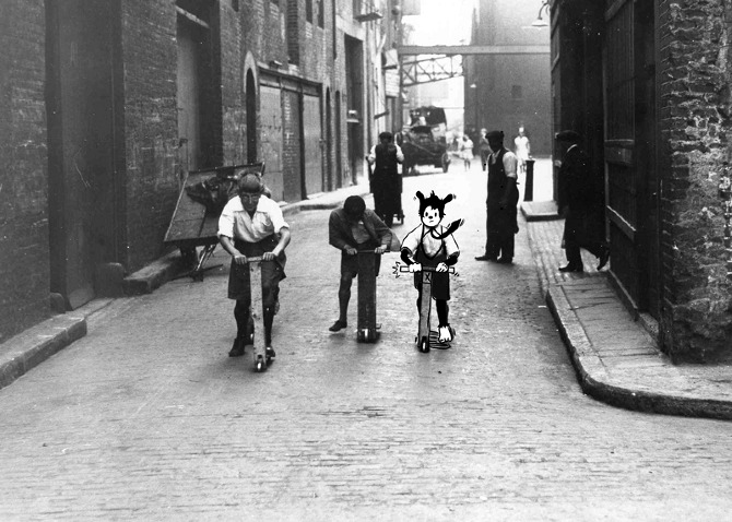 Consumed by black and white imagery, her illustrated world is never limited to a specific medium, drawing, painting, photos, toys.